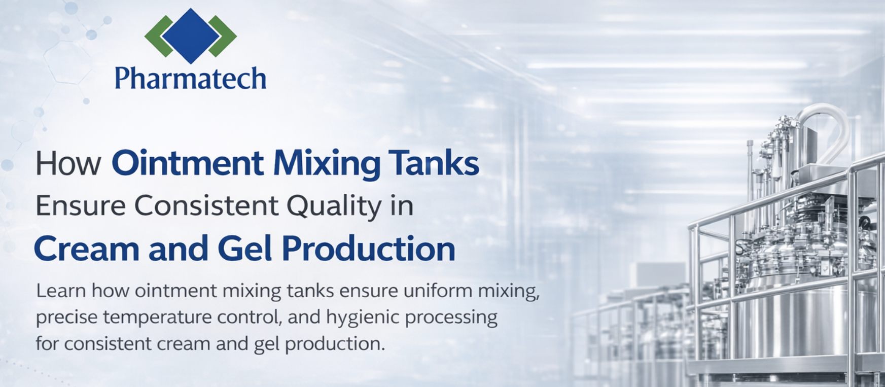 Pharmatech Process Equipments manufactures ointment mixing tanks with hygienic construction and closed-system designs that support sterile operations and regulatory compliance.